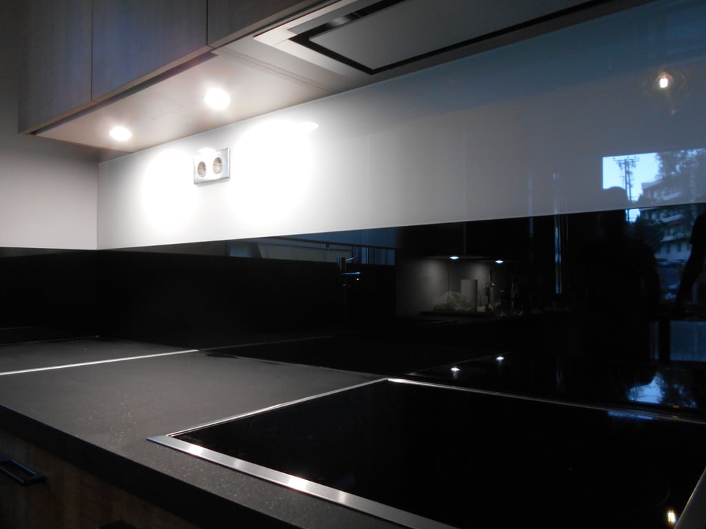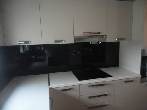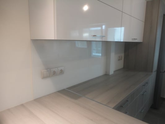Γυάλινη πλάτη κουζίνας με επένδυση. Δημιουργήστε την πλάτη κουζίνας με επένδυση γυαλιού, στο σχέδιο και το χρώμα που θέλετε.